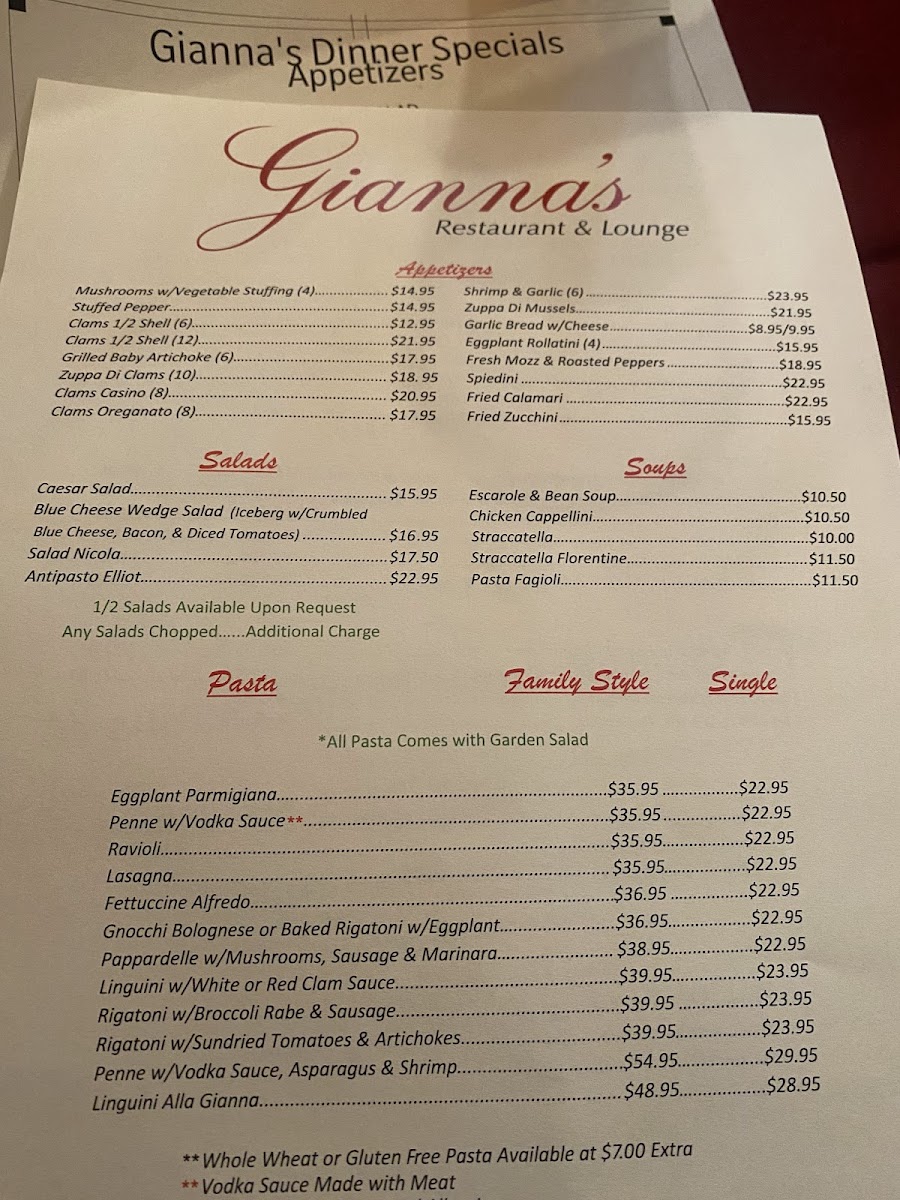 Welcome to Gianna’s, a jewel nestled in Carlstadt, NJ, where Italian culinary traditions come to life. This family-owned restaurant invites you to indulge in a thoughtfully crafted menu that showcases authentic flavors and quality ingredients. Starting with their comforting soups, like the Escarole & Bean soup or hearty Straccatella, each bowl is a warm embrace on a chilly day.